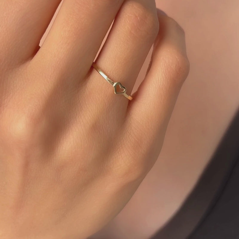 The Design Crafted from solid 14ct yellow gold, this ring is defined by its clean lines. The heart is not a separate charm but is formed from the band itself, creating a smooth, continuous flow. The ultra-thin profile makes it incredibly lightweight and perfect for stacking. It adds a tiny touch of romance to your hand without ever feeling bulky or intrusive.