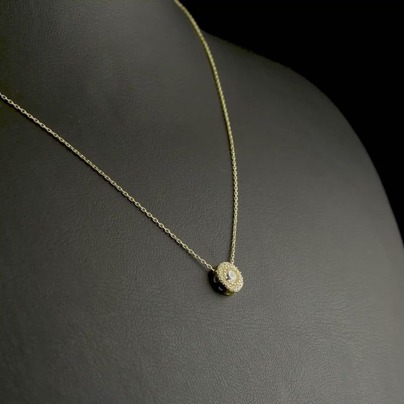 Captivate with Kolié's Halo Necklace, a piece where the brilliance of zirconia meets the timeless elegance of Gold. The necklace's 42 cm length positions the pendant perfectly, making it a statement of luxury.